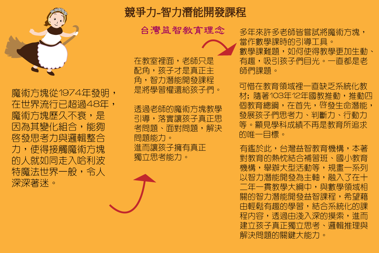 孩童們發展,必須一步一步建構式學習,由淺入深,強化智力發展與知識,提昇個體潛力,使得孩童們、青少年學習是更具競爭力。
